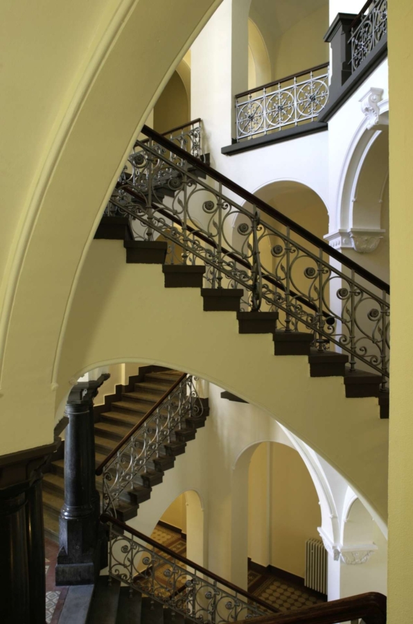 Es beeindruckt nicht nur durch die markante hochherrschaftliche Fassadengestaltung, sondern auch durch das imposante Treppenhaus.