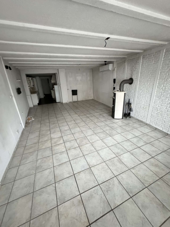 Diele, Badezimmer, großer Küchen- und Wohnbereich, Ausgang zu einem kleinen Hinterhof.
