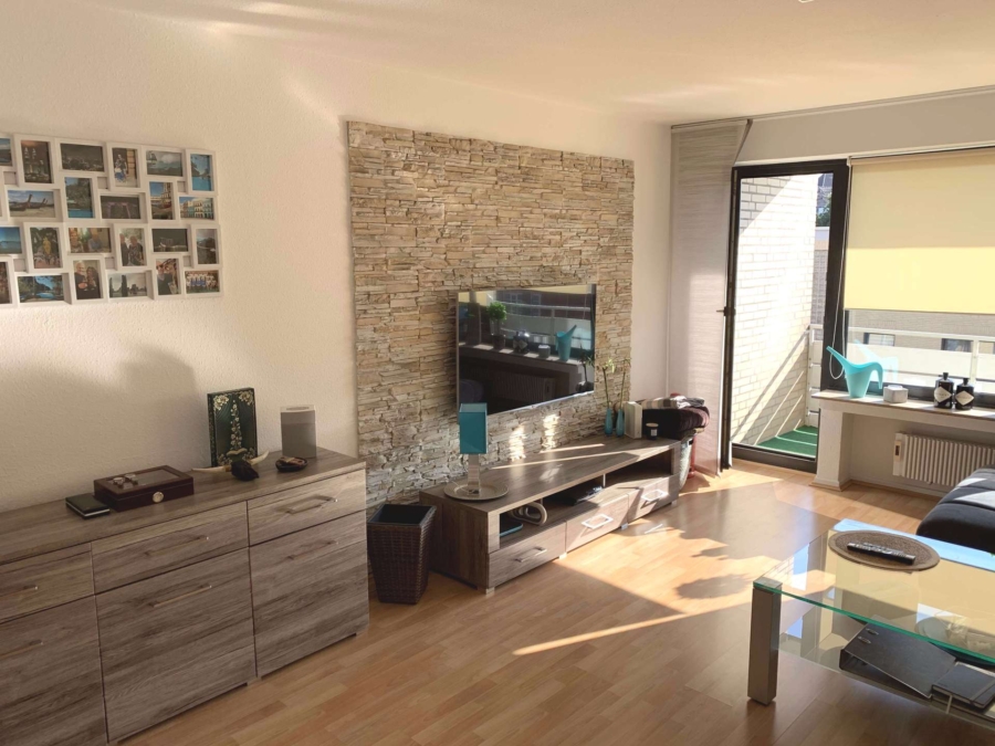 Diele, Küche, Schlafzimmer, Bad, Wohnzimmer mit sonnigem Balkon.