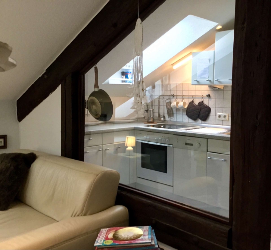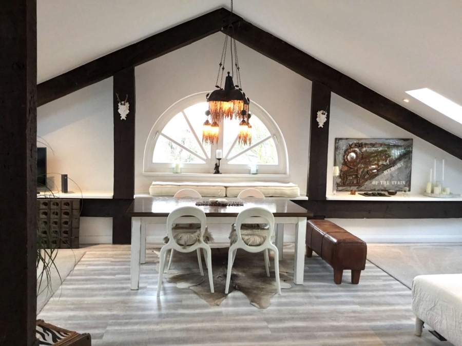 Das Loft ist mit den ursprünglich alten Holzbalken belassen,was einen besonderen Charme darstellt.