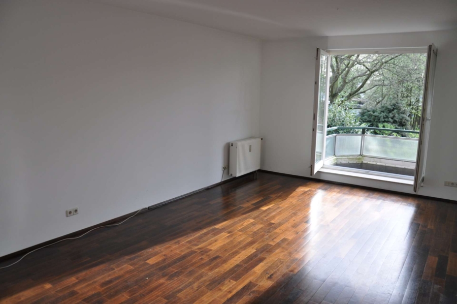 Den sehr großen Balkon in Süd-/Westlage erreichen Sie sowohl vom Wohnzimmer als auch vom Schlafzimmer aus.
