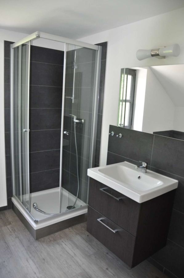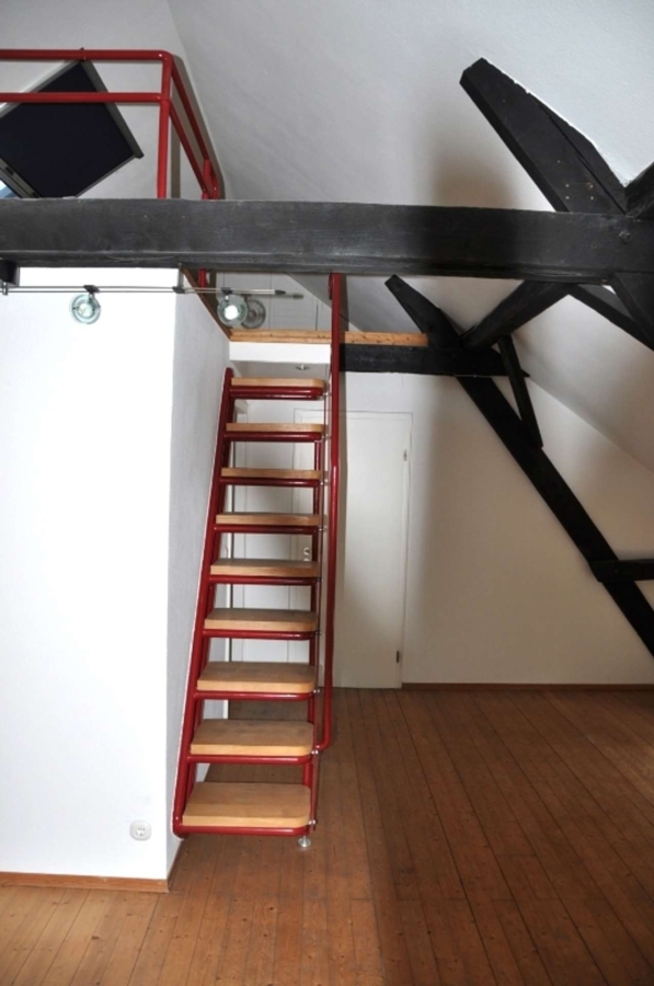 Diele, Badezimmer, Küche, Schlaf-/Wohnraum. Die Ausgebaute Gaube ist über eine Treppe zu erreichen und kann auch als Schlafbereich genutzt werden.